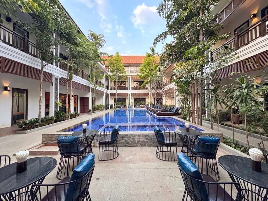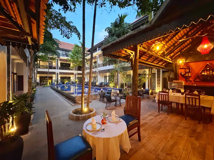 Dining Options: The hotel features a restaurant serving French, American, European, and Cambodian cuisines. Breakfast options include continental, American, buffet, vegetarian, and Asian. A bar and coffee shop are also available.